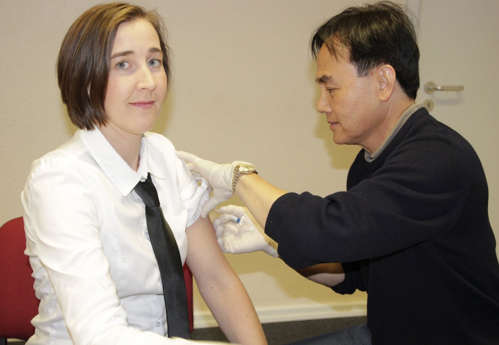 Aktiv geht immer! Annette Görn wird von Hanny Thenoch geimpft.