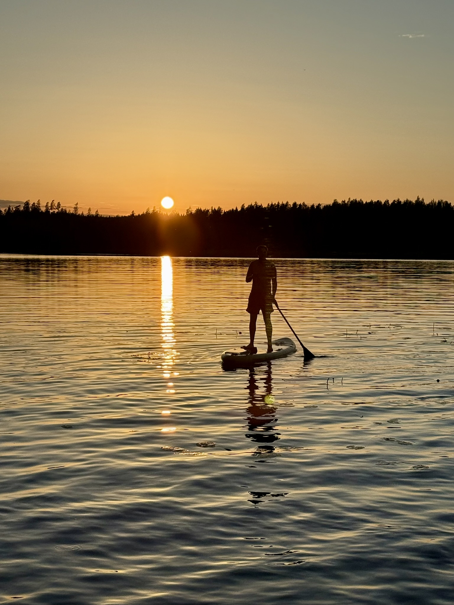 Nach der Ankunft in Finnland ging es direkt ins Camp Palotarus, wo die Gruppe mit einer ordentlichen Portion Saunawärme und anschließender Abkühlung im See empfangen wurde. Schon am ersten Abend standen zudem Stand-up-Paddling, Rudern und Baden sowie ein gemütlicher Grillabend in der Kota auf dem Programm.