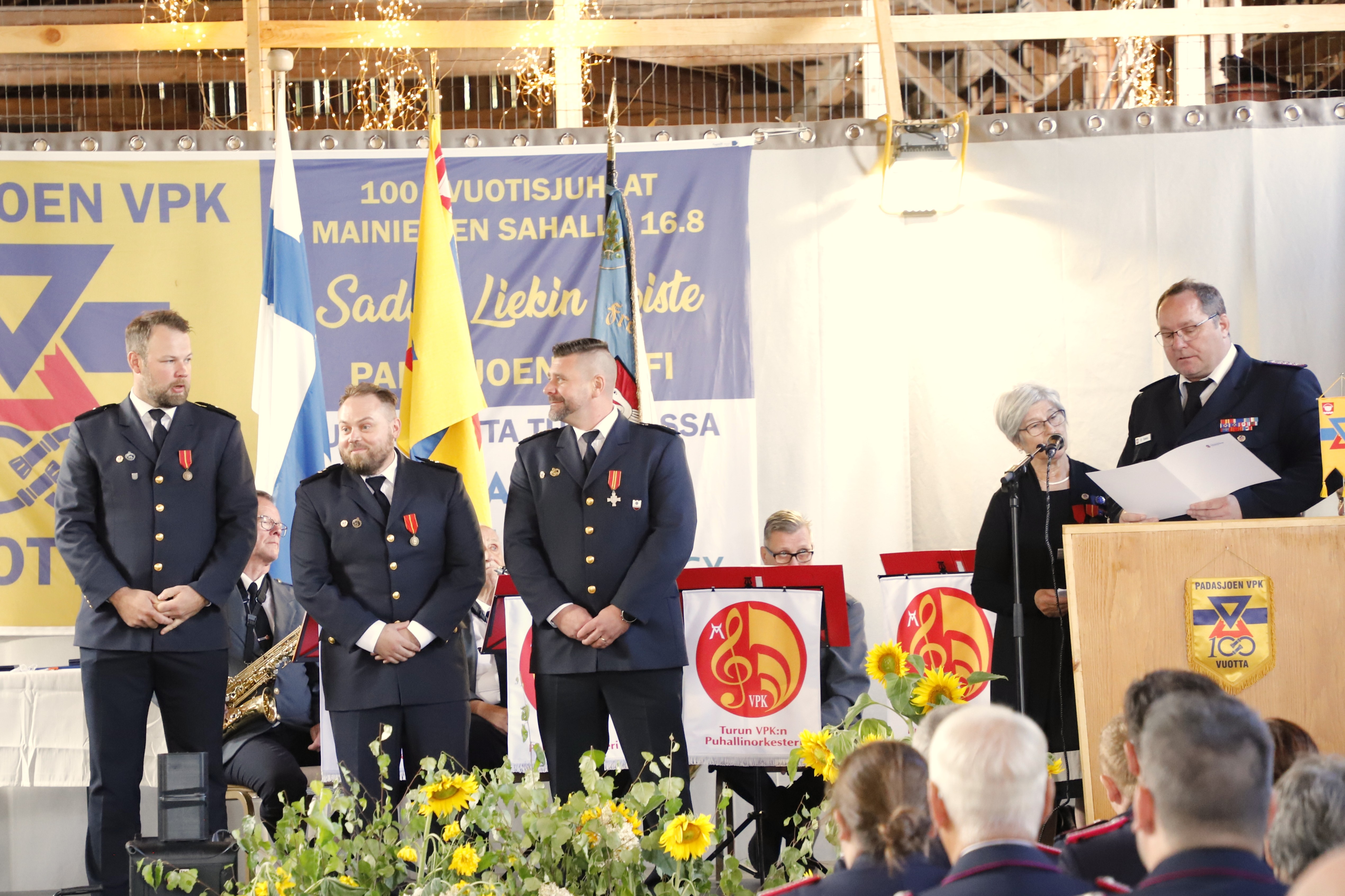 - Ehrung mit der Medaille für int. Zusammenarbeit des DFV für Matias Kalio, Marko Salovaara und Martti Salonen