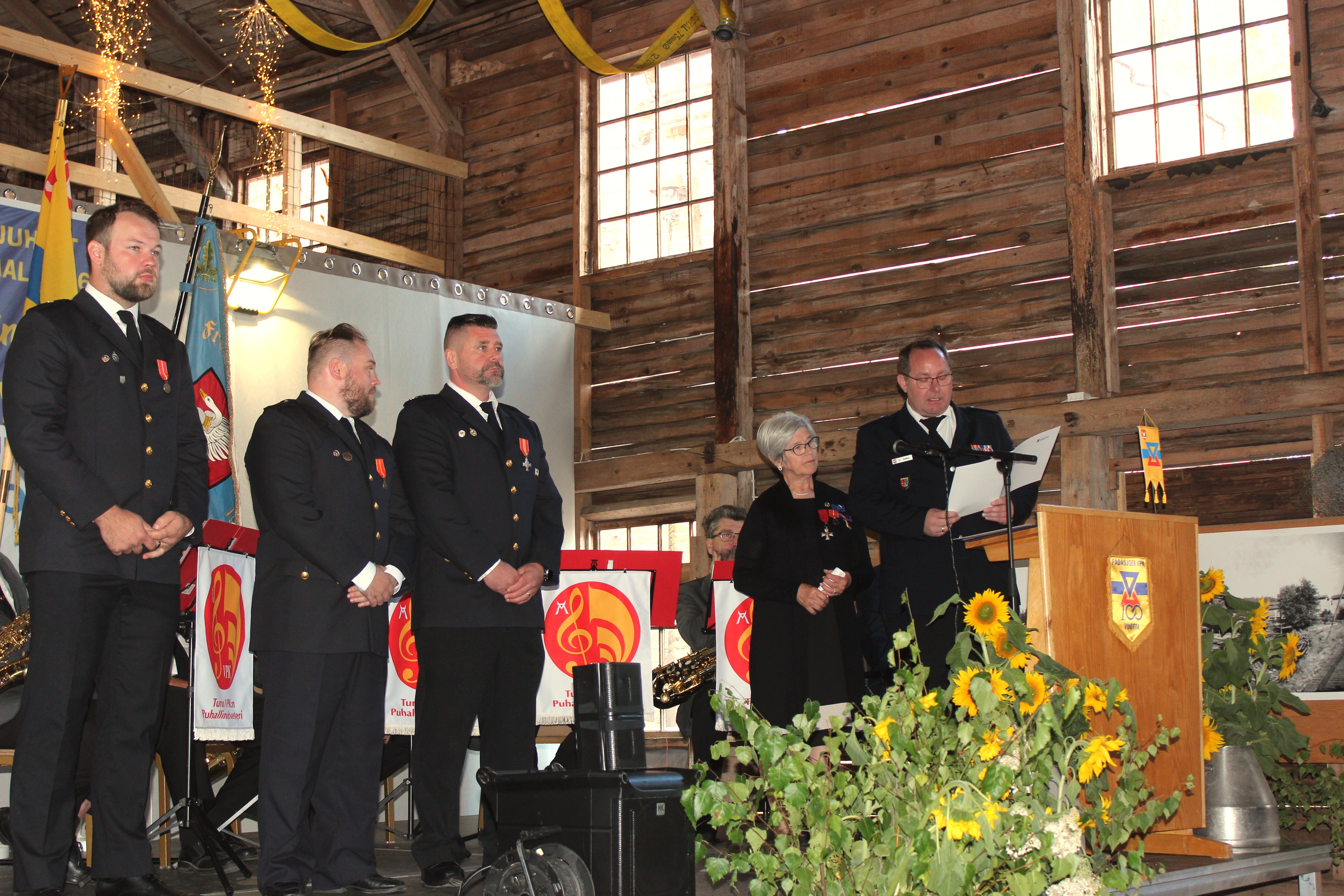 Im Rahmen des Festaktes wurden drei Oher Kameraden für ihr besonderes Engagement ausgezeichnet. Zudem verlieh Wehrführer Selke drei finnischen Feuerwehrangehörigen die Medaille für internationale Zusammenarbeit des Deutschen Feuerwehrverbandes.